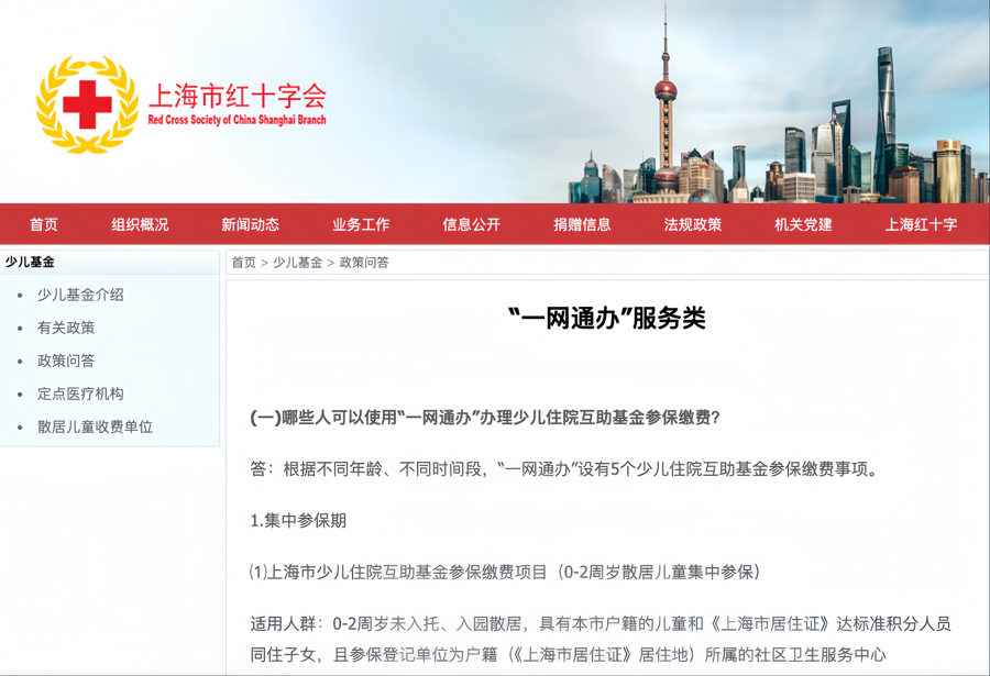 少儿住院互助基金参保缴费、住院须知、结算规定、定点医院等基本政策,公布于上海市红十字会官网(www.redcross-sha.org.cn)少儿基金专栏、上海市红十字会微信订阅号(shanghairedcross)少儿住院基金专栏,参保前,家长可自助查看。有关参保问题可咨询所属区少儿住院互助基金管理办公室(联系方式可在市红十字会微信订阅号、随申办“上海市少儿住院互助基金电子医疗证”事项中查询),线上参保问题还可向线上帮办客服咨询。