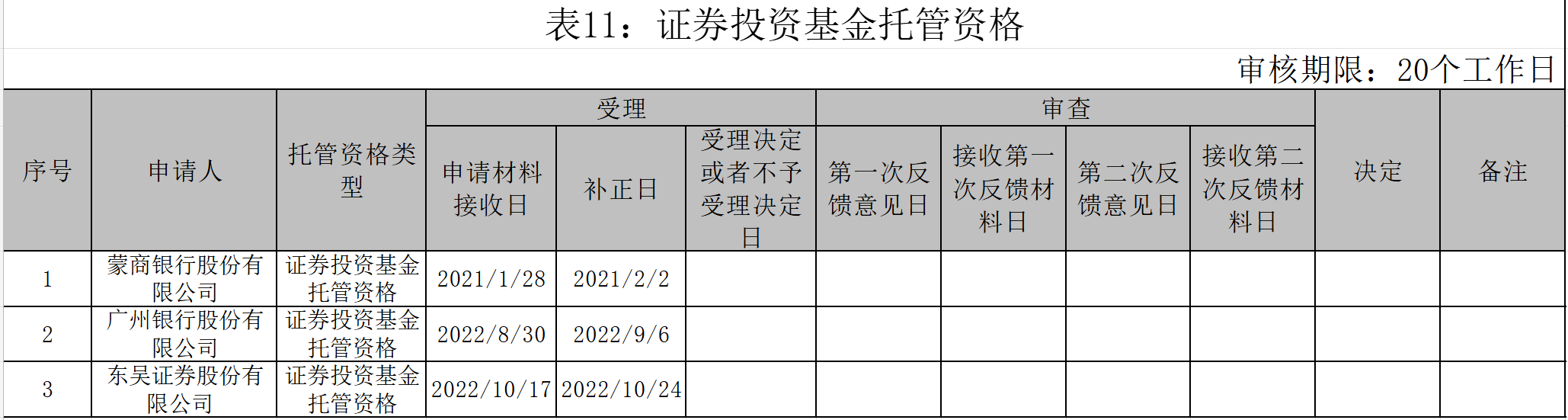 (证券投资基金托管资格申请受理及审核情况 图片来源:证监会)